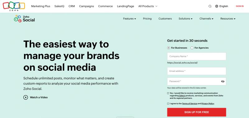 Zoho Social integrates with other Zoho products like Zoho CRM, making it a strong tool for companies already using Zoho’s ecosystem of tools.